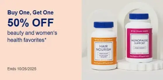 Hurry in and buy one, get one 50% off beauty and women's health favorites in store for a limited time.