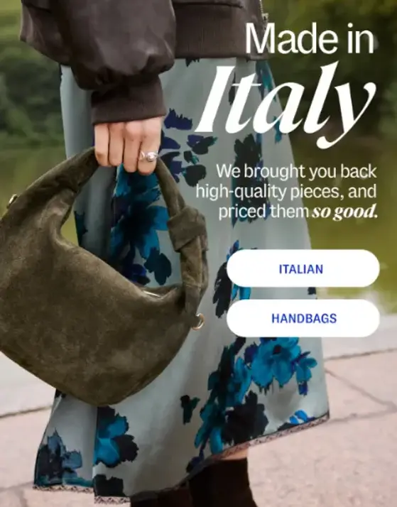 We brought you back high-quality pieces and priced them good. Stop by and shop for Italian-made handbags in store today!