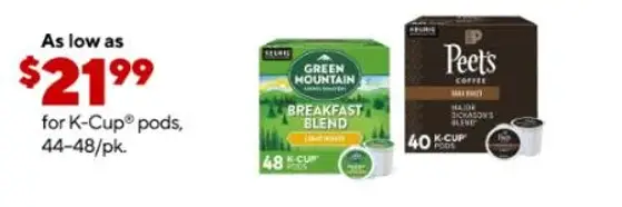 As Low as $21.99 for K-Cup pods, 44-48/pk