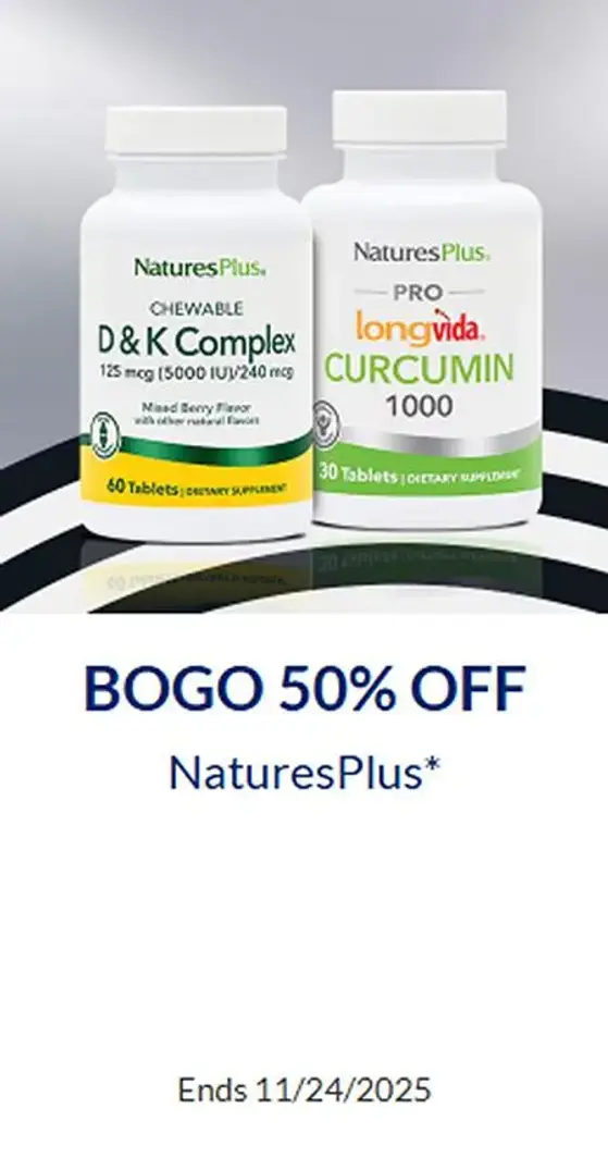 Hurry in and buy one, get one 50% off NaturesPlus products in store.