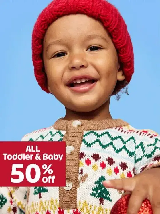 Get it now! Shop in store and get 50% off all toddler & baby.