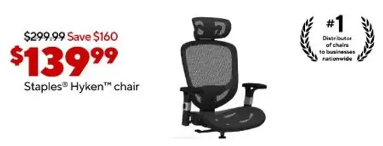Hurry in and save! Shop in store and get $139.99 on Staples® Hyken™ chair.
